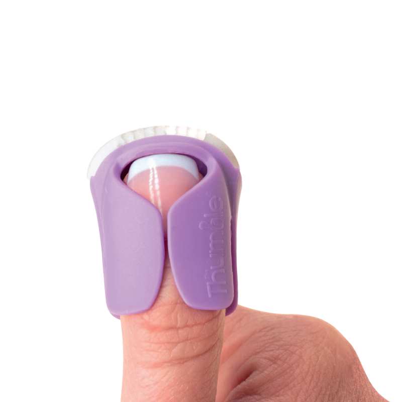 STICK - Press the nail file firmly onto the Thumble® Make sure the nail file is applied to the Thumble® correctly. Follow the contour of the Thumble® and make sure it doesn’t catch the raised lip above the 3 small holes.